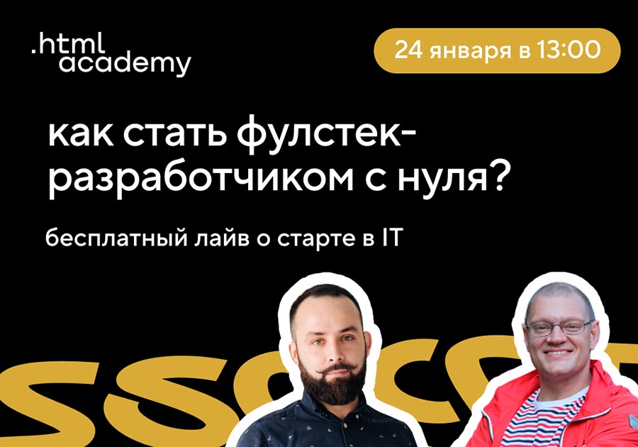 Запишитесь на лайв, чтобы не пропустить событие. Всем участникам подарим скидку на курсы HTML Academy и пришлём полезные материалы по теме.
