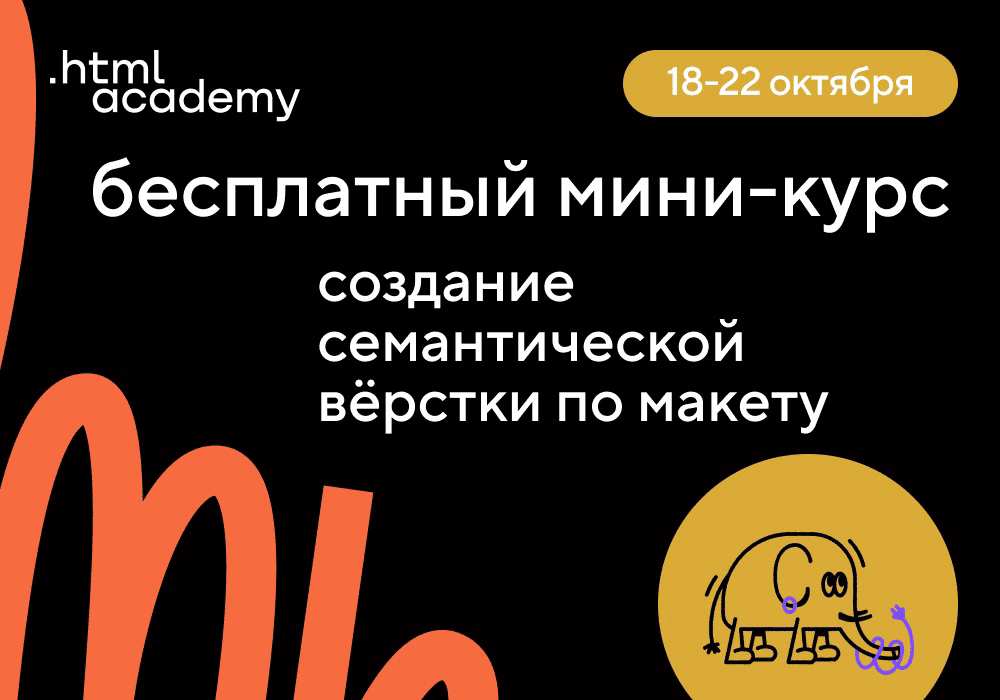 22.10 в 16:00. Итоги мини-курса «Создание семантической вёрстки по макету». Подведем итоги курса, разберём работы участников, выберем победителей и раздадим призы — скидки на тренировочные материалы и курсы, а также полезные учебные статьи.
