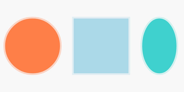 Как вы можете видеть из прилагаемого скриншота, фигуры по умолчанию имеют цвет заливки #000 (чёрный) без какого-либо стиля. Давайте поиграем с ними и добавим несколько стилевых атрибутов, вроде цвета заливки, её прозрачности, а также цвета, толщины и прозрачности контура. Вы можете проверить SVG Attributes для подробной информации.