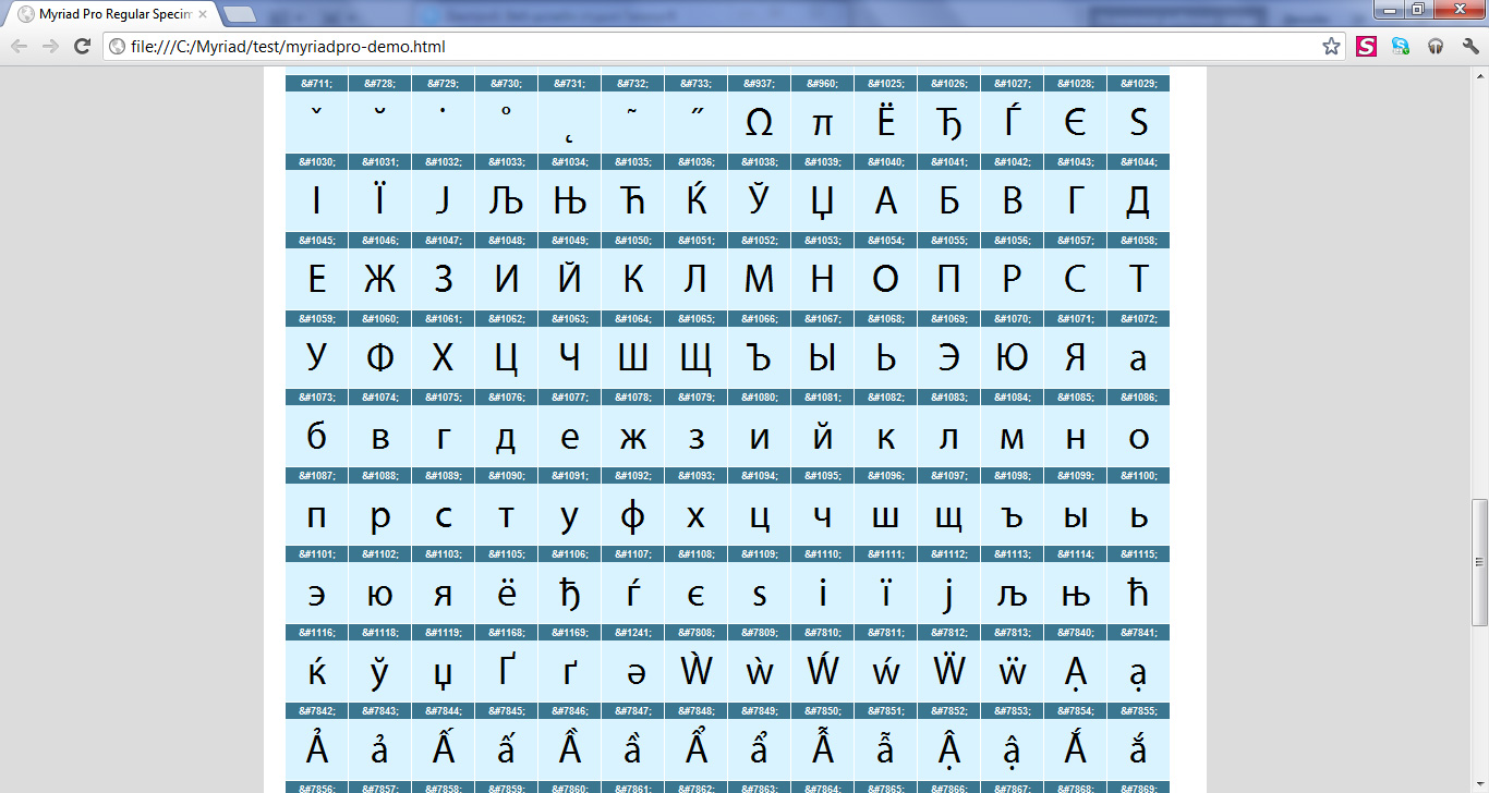 Но задача стоит, и теперь к делу. Вы задумались о том, как встроить в вёрстку MyriadPro.
