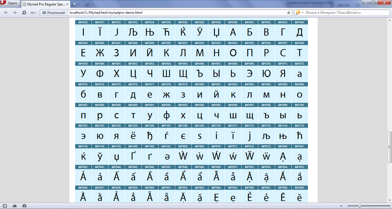 Проверяем во всех современных браузерах: Chrome, Firefox, Internet Explorer 9, Opera и Safari. Кириллица есть? Прекрасно.