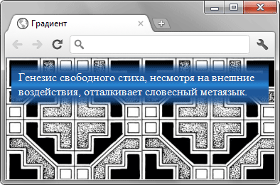 Результат данного примера показан на рис. 4. Обратите внимание, что один из цветов градиента задан прозрачным, поэтому он меняется косвенно через цвет фона веб-страницы.