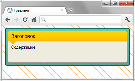 Сделайте блок, показанный на рис. 1. Блок содержит полупрозрачную градиентную рамку с градиентным фоном под заголовком и небольшим указателем. Фон на странице приведён лишь для наглядности эффекта полупрозрачности, вы можете указать любую свою картинку. Минимальная высота блока составляет 100px.