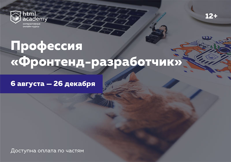 Открыта запись на профессию «Фронтенд-разработчик» с 6 августа по 26 декабря 2018 года. Всё обучение проходит онлайн, так, что его можно подстроить под свой график.