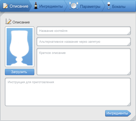 Сверстайте пошаговую форму из PSD-файлов для ввода информации о коктейле.