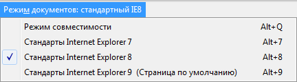 | IE8 | Стандартный режим браузера IE8 и режим при переключении на него в IE9. |